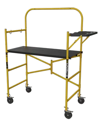 If you want to stand over 50 inches, you’ll graduate from the utility scaffold to a 6 ft Multifunction Unit. These are a bit more cumbersome than the utility scaffolds but provide stability and work area unrivaled by any ladder.